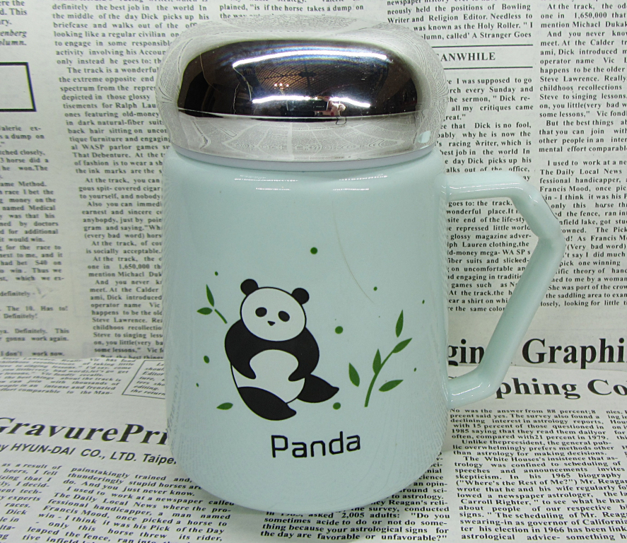 Чашка керамическая с крышкой " Пандочка" , цвет мятный , вместительность 310 млл ( размер 12х 8 х7 см)Крышка-зеркало .