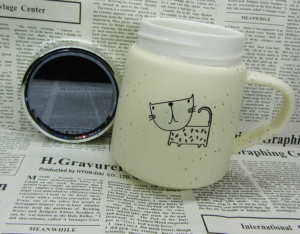 Чашка керамическая с крышкой " Кошка" , цвет молочый , вместительность 450 млл ( размер 13х 8 х7 см) Крышка-зеркало .