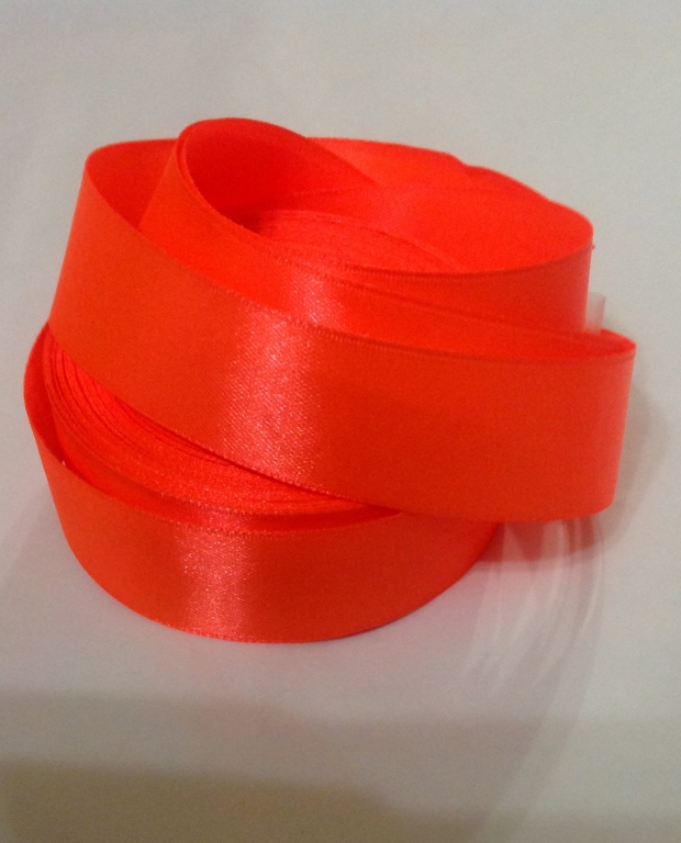 Лента атласная 25 мм(цв. Ярко оранжево неон23 метра )
