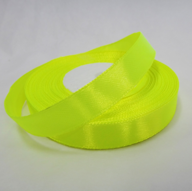 Лента атласная 12 мм( 23 метра)неоноволимонный .