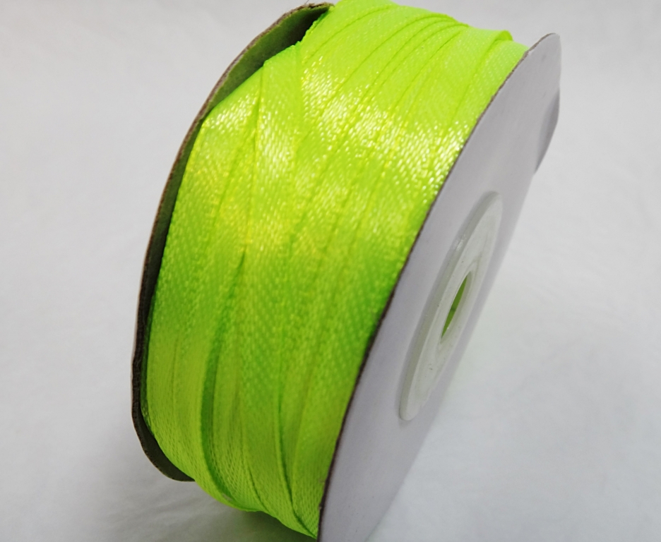Лента атласная 3 мм ( 91метр )цв. салатово-желтый неон
