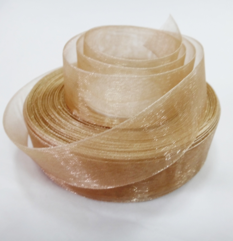 Лента органза 2,5 см цв.а-5 бежевый ( в рулоне 46 метра)