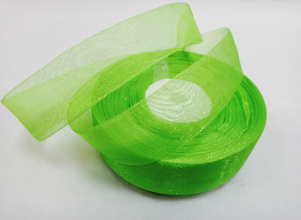 Лента органза 2,5 см , цвет ЯРКО-ЗЕЛЕНЫЙ ( в рулоне 46 метра)