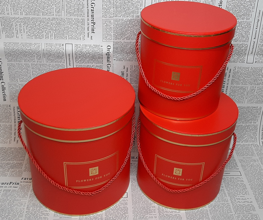 Коробка для цветов комплект 3 шт, размер-22х22 ,20х20 ,18х18 см. Цвет красный