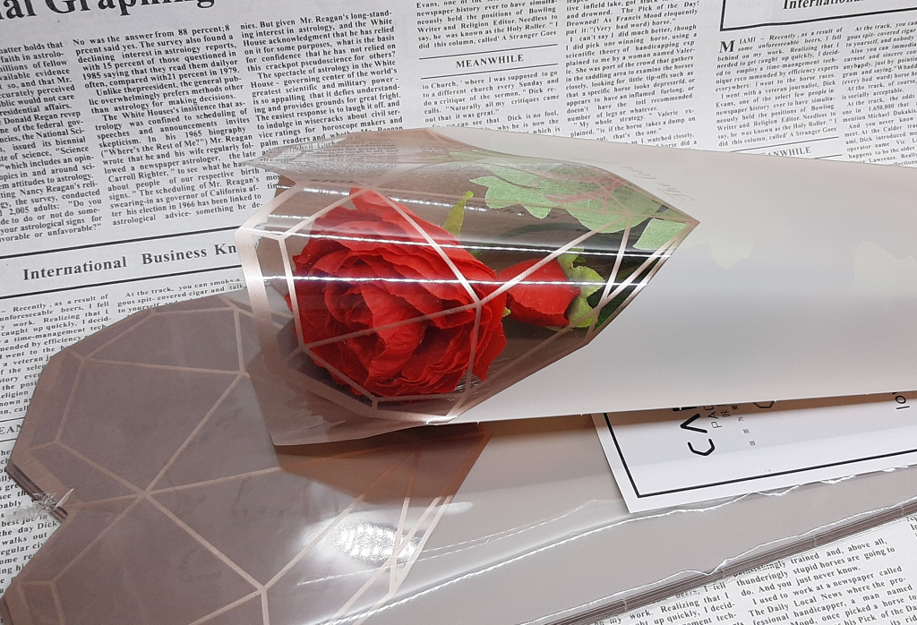 Кульок-пакет для цветов (12х40 см ), пленка с золотистым декором.