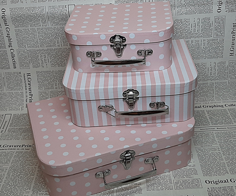Подарочная коробка чемодан 9845 (3 шт ) розовый горох