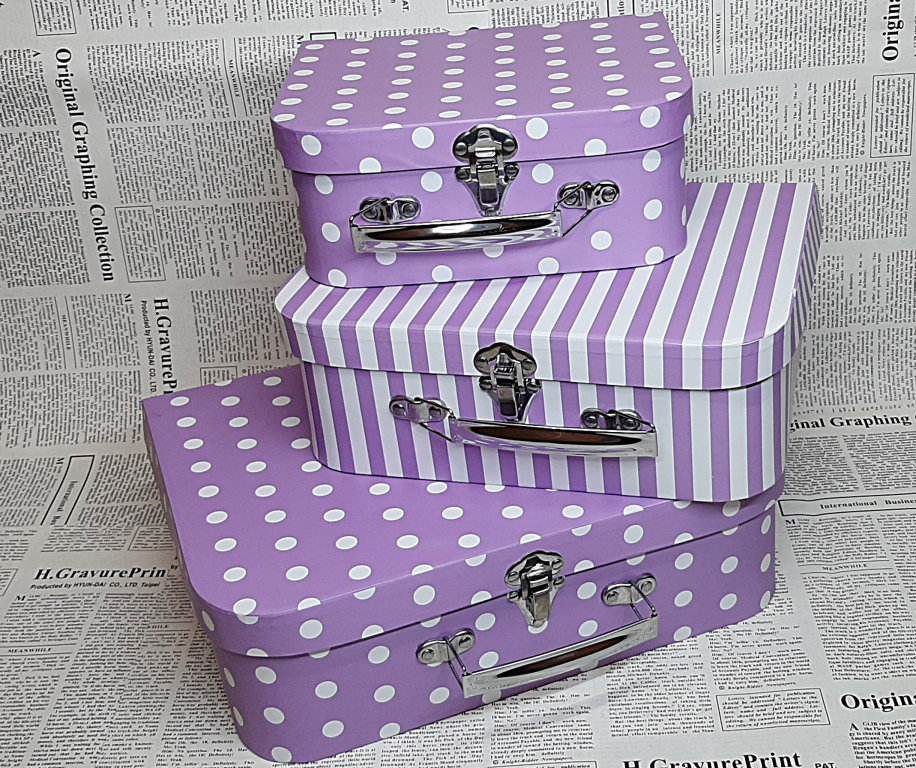 Подарочная коробка чемодан 9845 (3 шт ) сиреневый горох