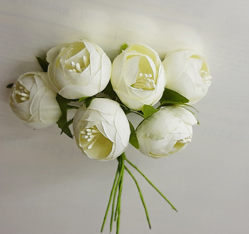 Цветы для декора, 6 шт , диаметр-3-4 см , выполнены из ткани .