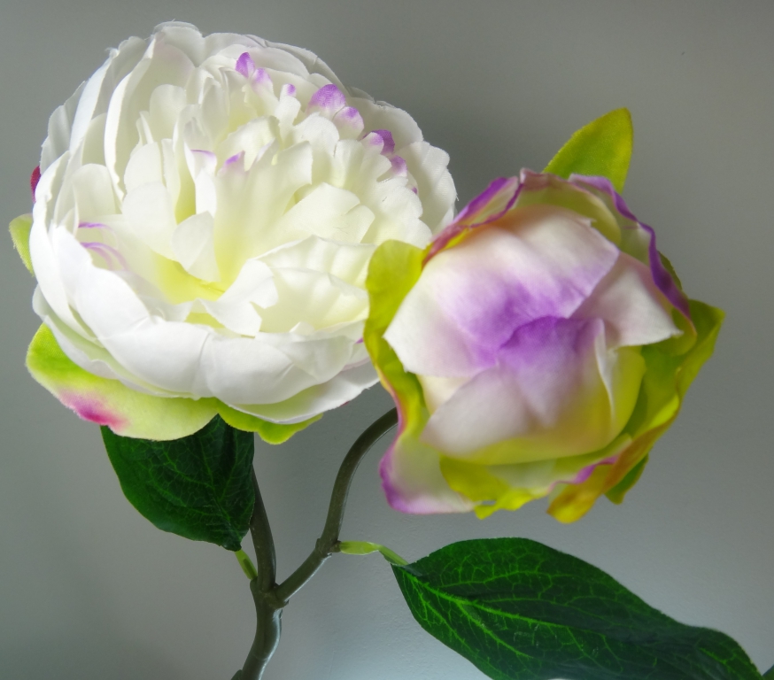 Пион с бутоном и листьями на ножке , диаметр цветка 10 см , бутона 6 см , высота ножки с цветком 35 см.